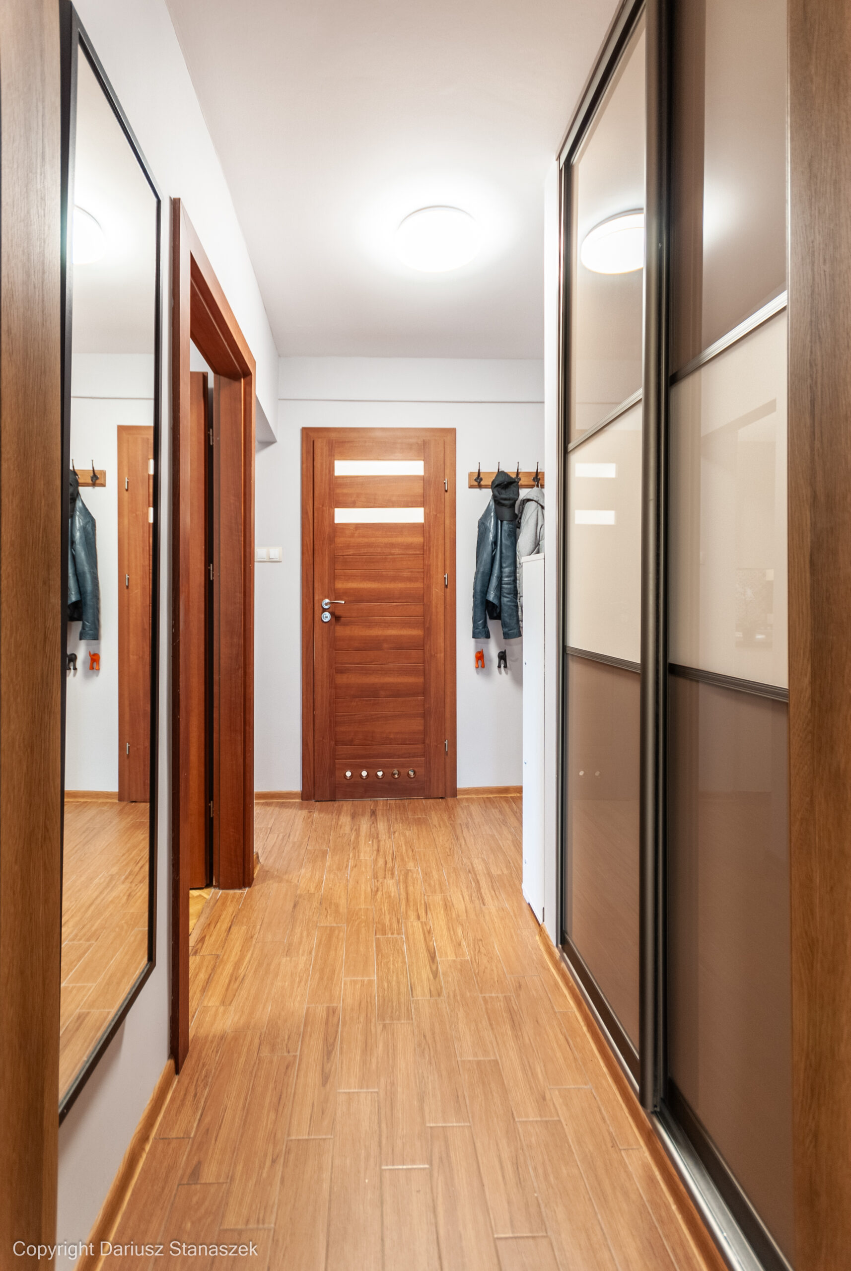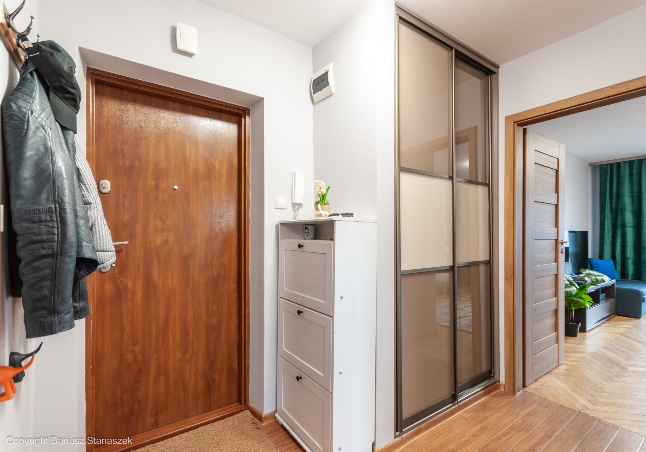 W przedpokoju duża szafa oraz szafka na buty.